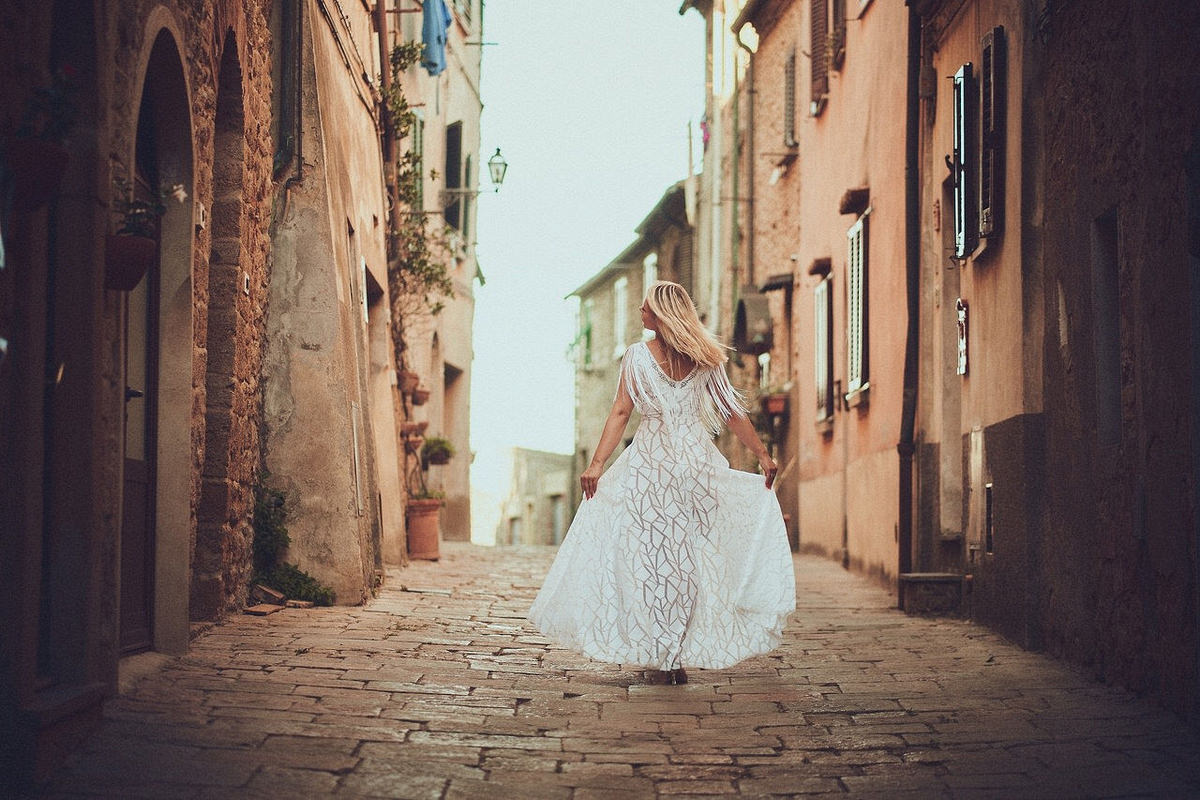 Lipcowe temperatury w tej części świata nie dają szans na wielogodzinne pozowanie w strojach ślubnych tudzież bieganie z aparatem, ale wczesna pobudka daje nie tylko szansę na uniknięcie upału, ale również pozwala uniknąć tłumu turystów codziennie przelewającego się przez włoskie miasta i miasteczka.