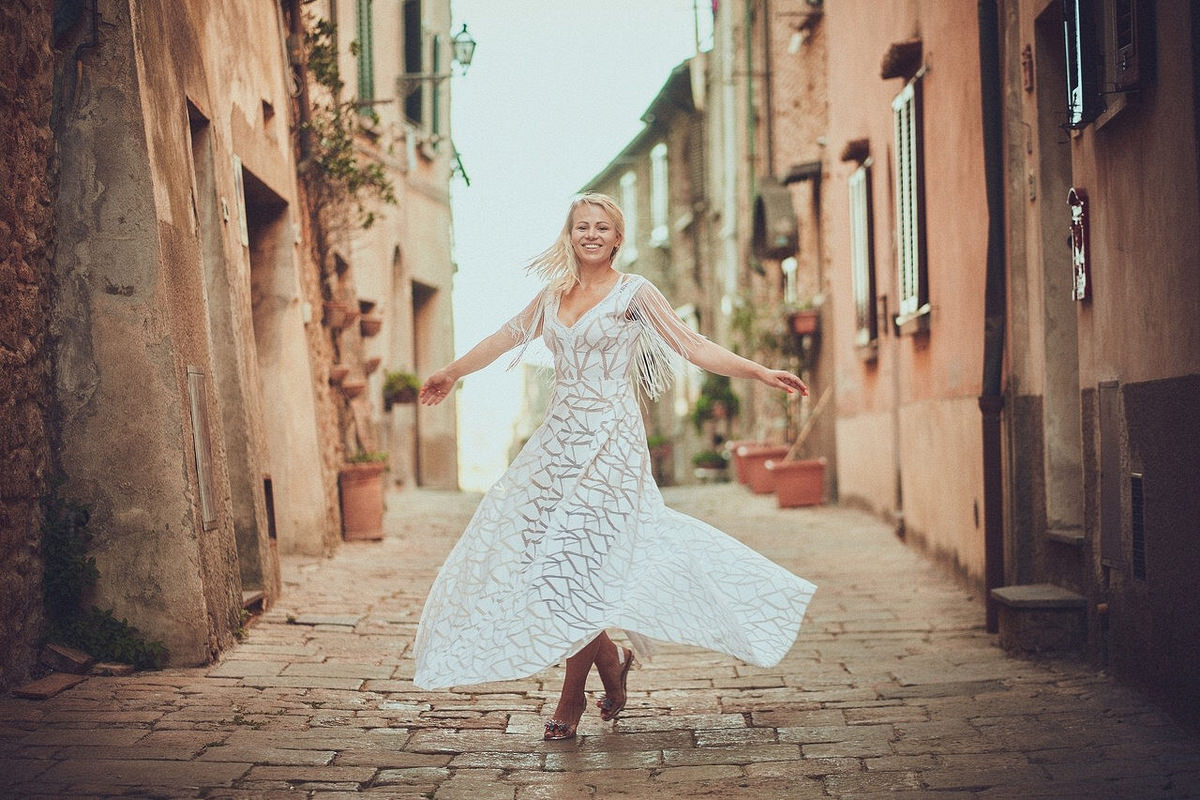 Lipcowe temperatury w tej części świata nie dają szans na wielogodzinne pozowanie w strojach ślubnych tudzież bieganie z aparatem, ale wczesna pobudka daje nie tylko szansę na uniknięcie upału, ale również pozwala uniknąć tłumu turystów codziennie przelewającego się przez włoskie miasta i miasteczka.