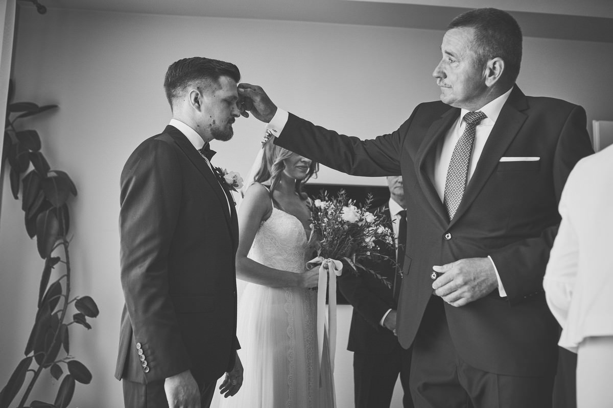 W zasadzie od progu wiedziałem, że Ania to prawdziwy wulkan energii. Uśmiech praktycznie nie schodził jej z twarzy, a to zawsze dobrze wróży na resztę dnia. Tomek okazał się także przesympatycznym gościem, więc od pierwszych minut wiedziałem, że zapowiada się dzień pełen energii i emocji, a to dla fotografa ślubnego woda na młyn. Uwielbiam emocje, bo to one sprawiają, że zdjęcia dostają dodatkowej głębi i każde z nich staje się osobną historią…