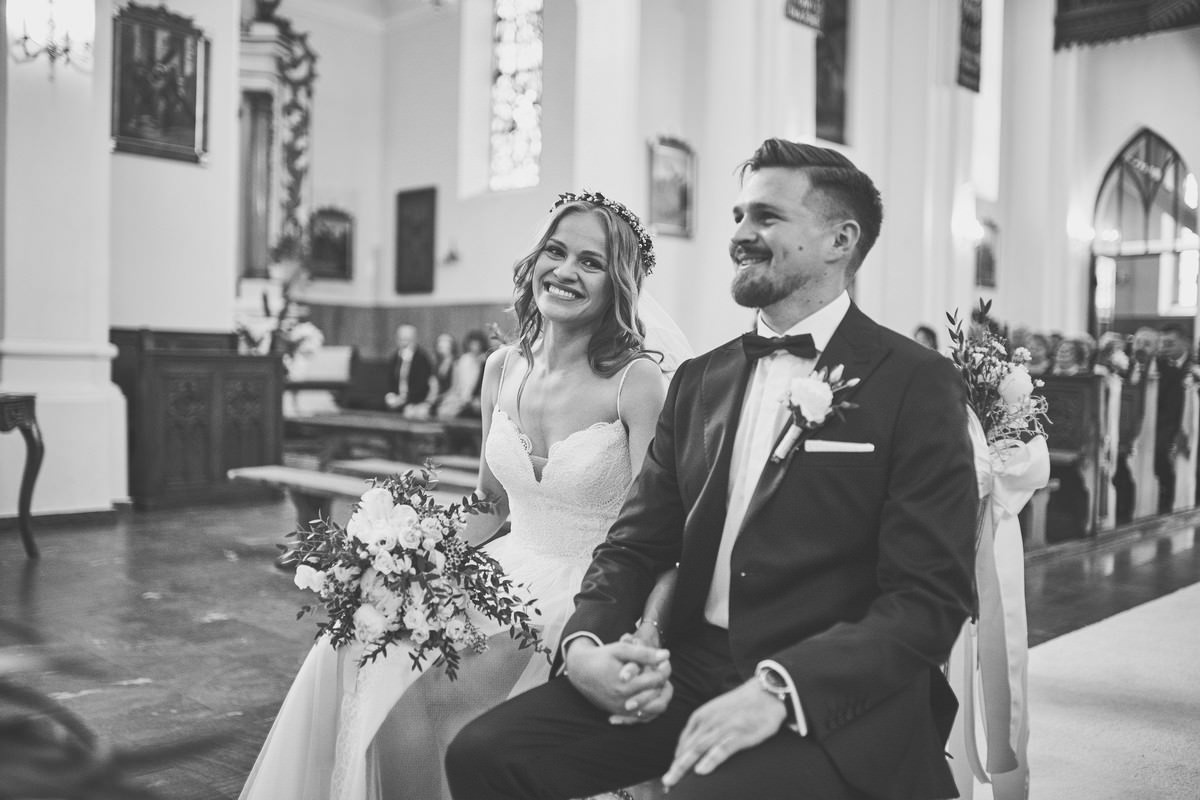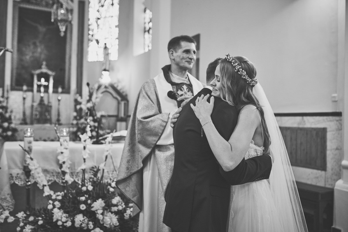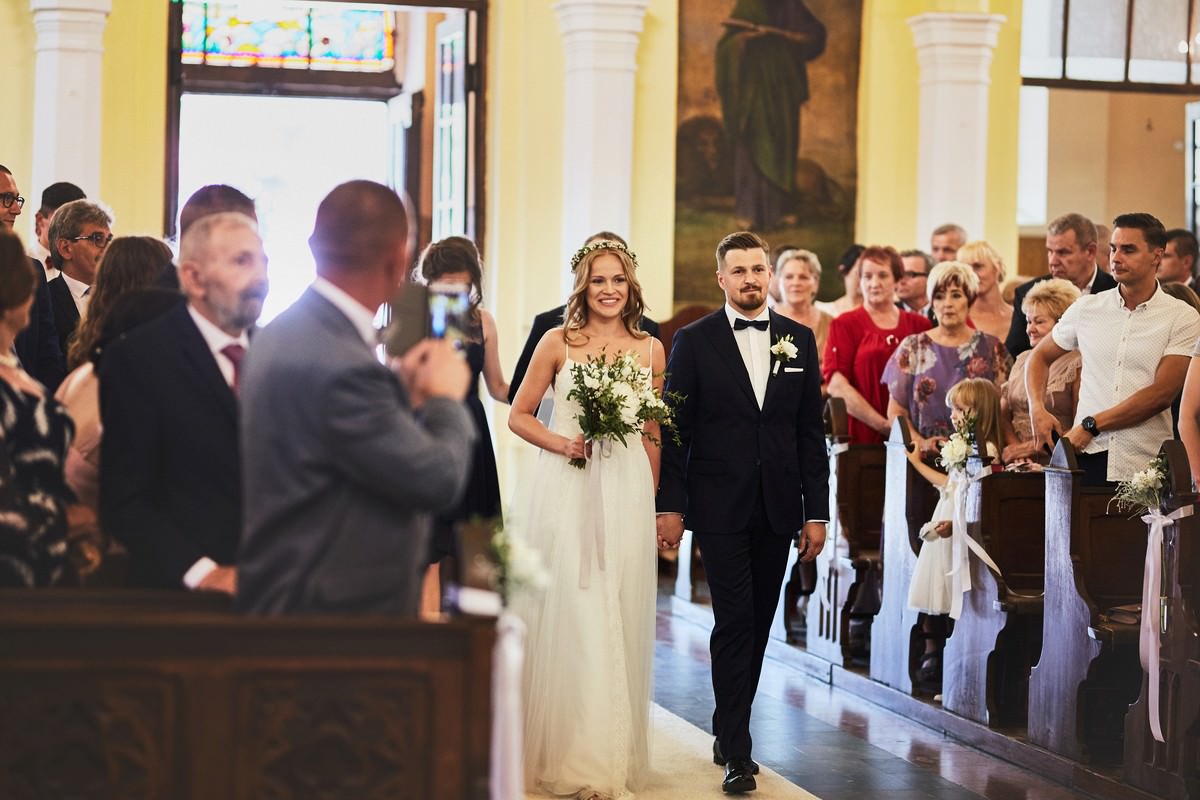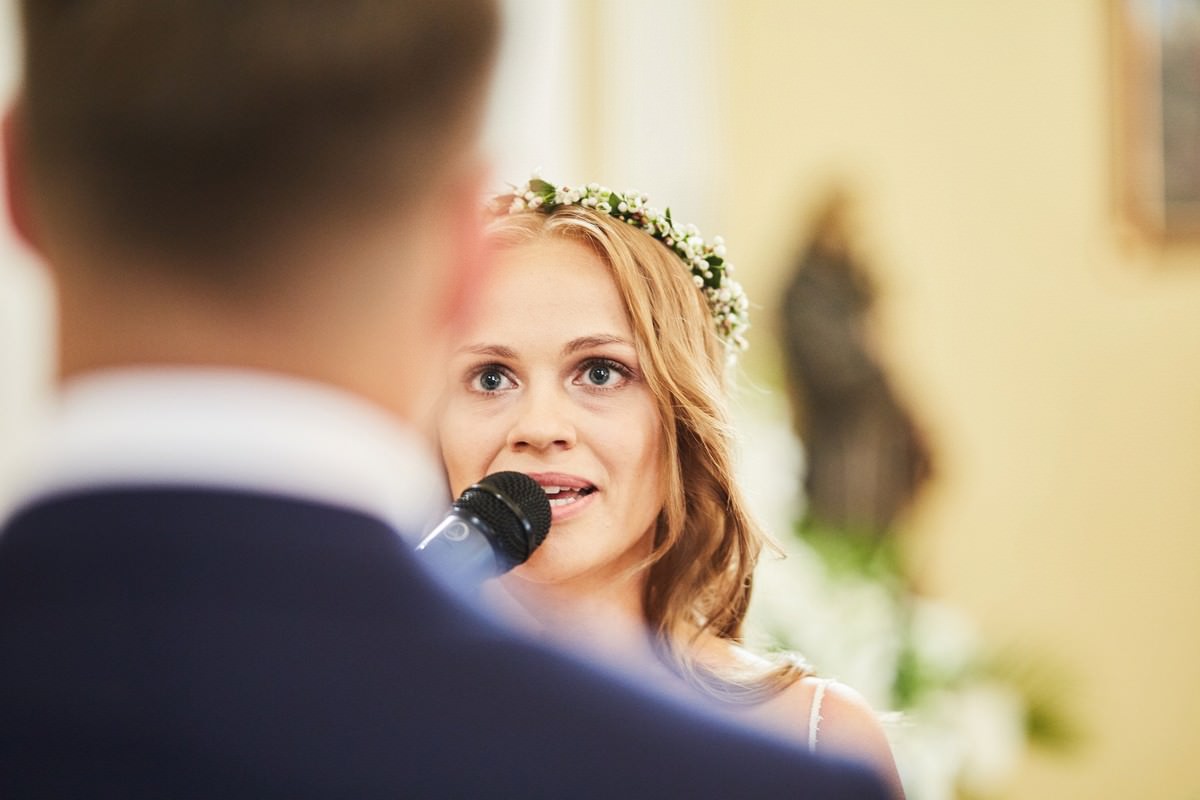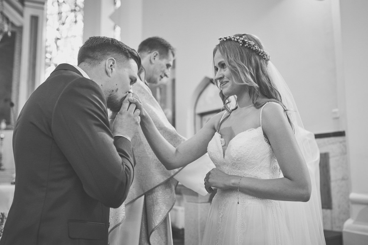 Ania była przepiękna w swojej białej sukni, a Tomasz dumnie stał u jej boku, uśmiechając się do niej z miłością i czułością. Ich słowa „TAK” brzmiały gorąco i szczere, jakby były wypowiadane dla samego siebie, a nie dla całego świata.