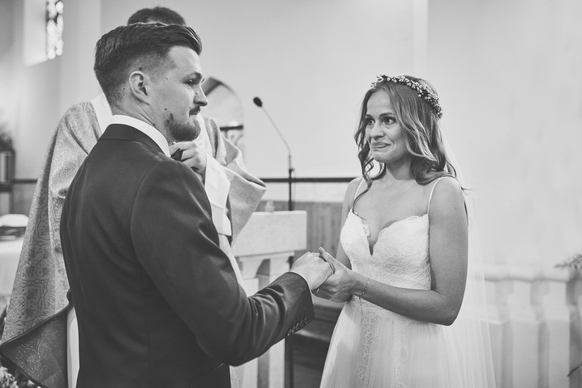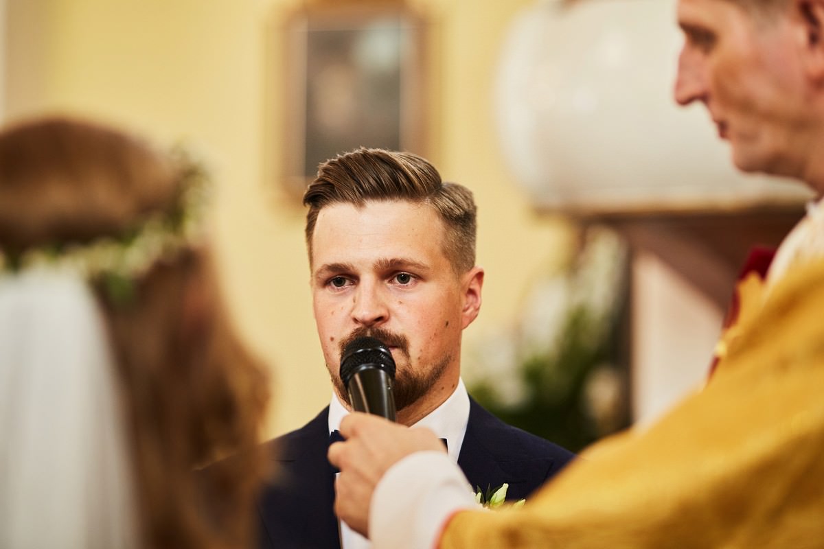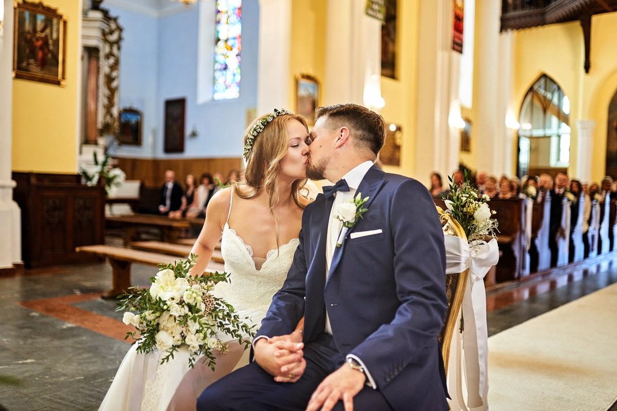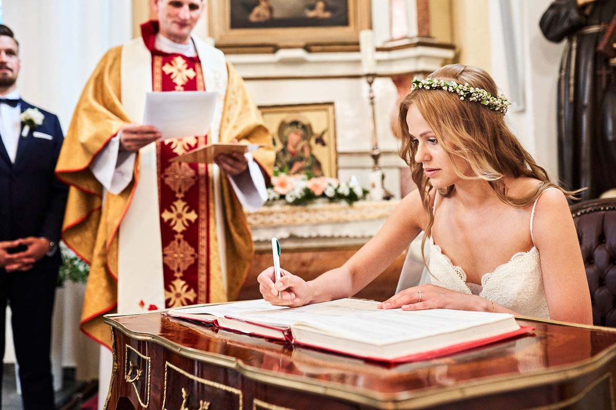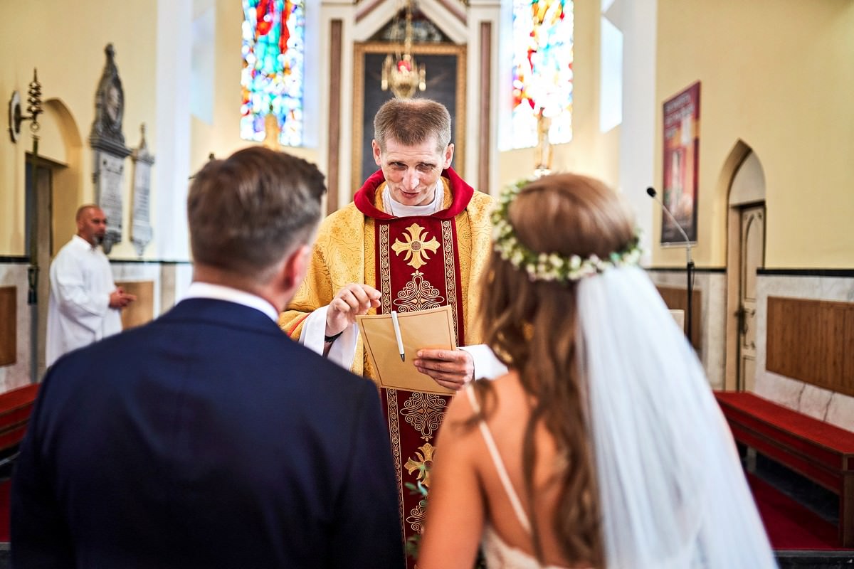 Ania była przepiękna w swojej białej sukni, a Tomasz dumnie stał u jej boku, uśmiechając się do niej z miłością i czułością. Ich słowa „TAK” brzmiały gorąco i szczere, jakby były wypowiadane dla samego siebie, a nie dla całego świata.