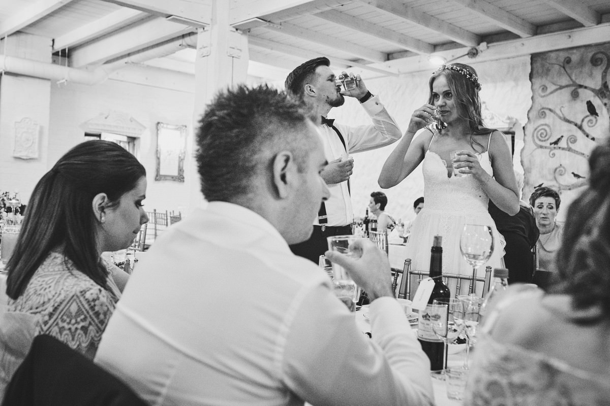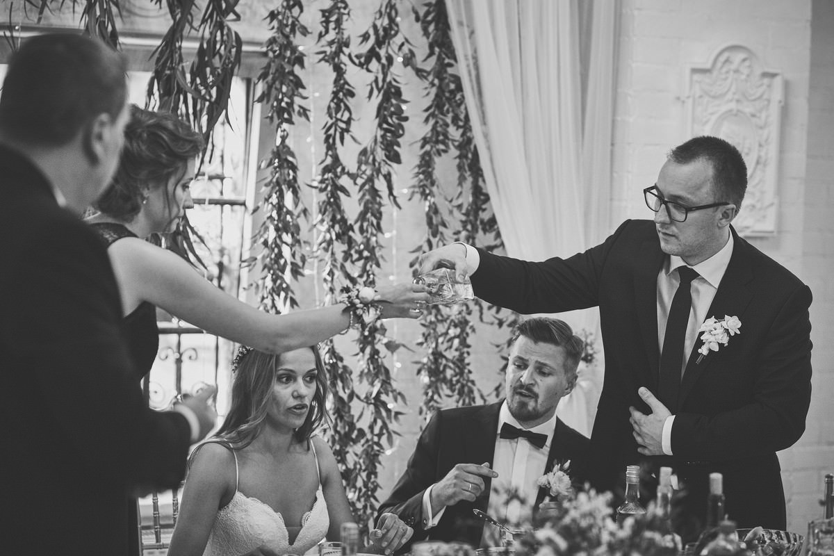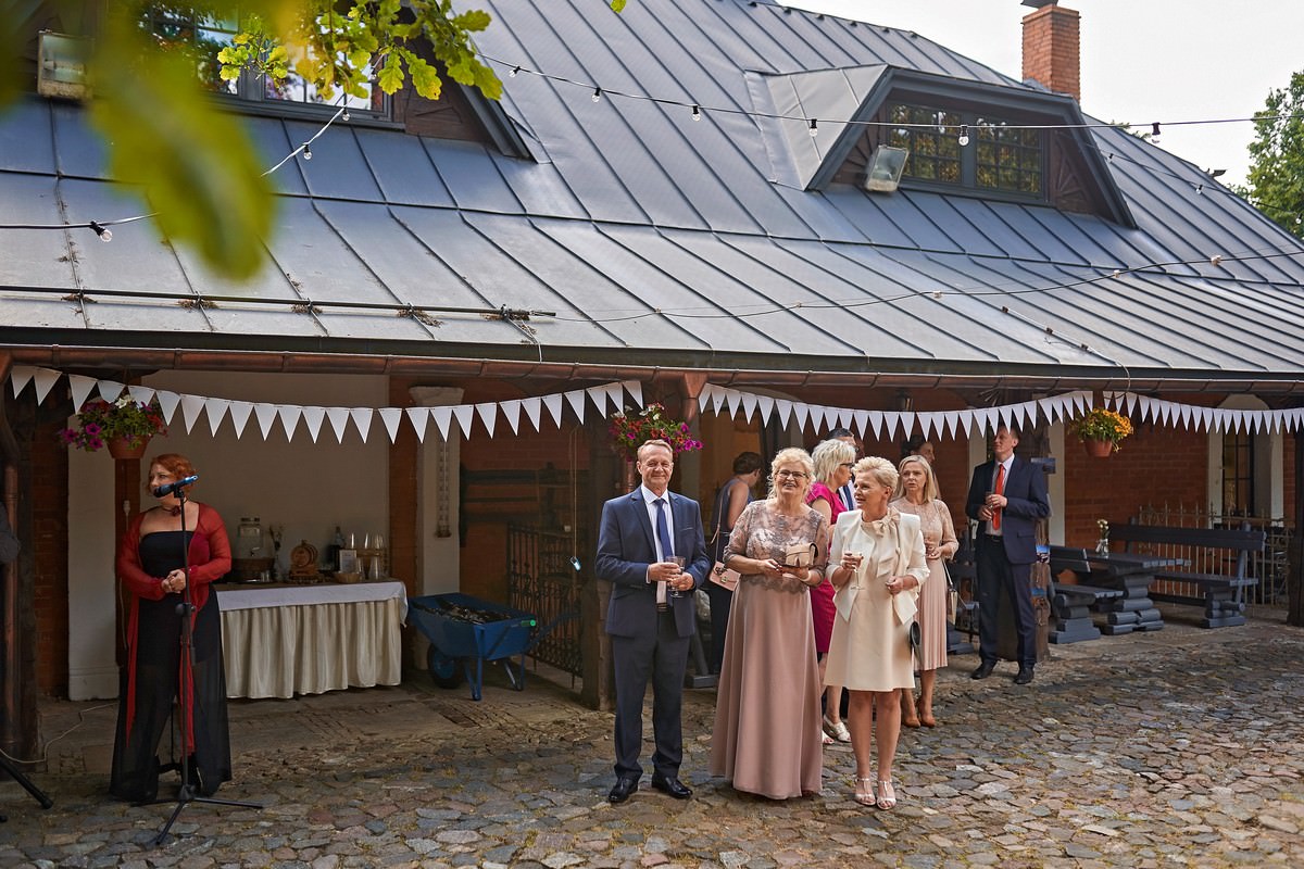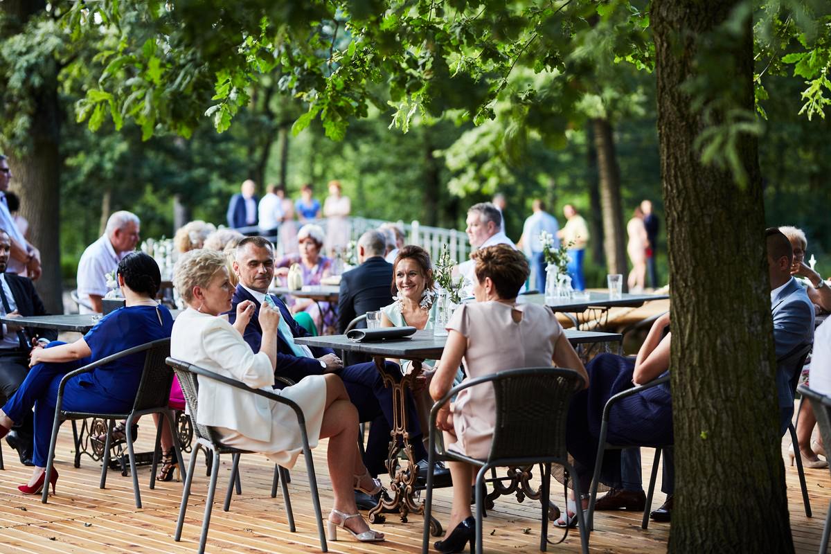 Po ceremonii weselnej przyszedł czas na przyjęcie, które odbyło się w klimatycznej restauracji „Nostalgia” w Sokolnikach. To miejsce z pewnością zasługuje na swoją nazwę, ponieważ przenosi gości w inny wymiar czasowy, w nostalgiczne czasy minionych epok.